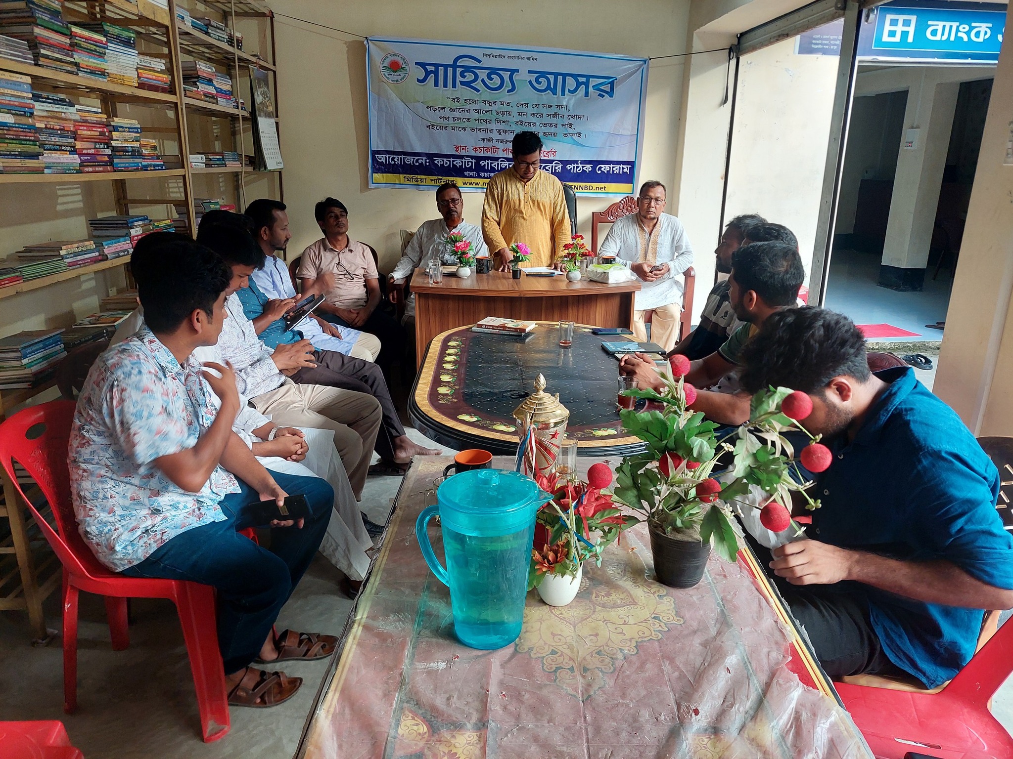 গত ৮জুন ২০২৫ কুড়িগ্রামের কচাকাটা থানার কচাকাটা পাবলিক লাইব্রেরি প্রাঙ্গনে জাতীয় কবি কাজী নজরুল ইসলাম এর ১২৬ তম জন্ম বার্ষিকী উপলক্ষে “সাহিত্য আসর” অনুষ্ঠিত হয়। অনুষ্ঠানে সভাপতিত্ব করেন বিশিষ্ট সমাজ সেবক, সাংবাদিক ও ব্যাংকার এবং দুধকুমার ফাউন্ডেশন ও কচাকাটা পাবলিক লাইব্রেরি এর প্রতিষ্ঠাতা চেয়ারম্যান এস এম আতাউর রহমান, প্রধান আলোচক হিসেবে আলোচনা করেন বিশিষ্ট কবি আসতাব হোসেন, আলোচক হিসেবে উপস্থিত ছিলেন শিক্ষক আলফাজ আলম, অধ্যাপক শহিদুল ইসলাম, প্রভাষক কাজী নজরুল ইসলাম, কচাকাটা প্রেসক্লাবের সভাপতি রফিকুল ইসলাম, সেক্রেটারী নুরে আলম সিদ্দিক, সাংবাদিক ও লেখক আরমান আলী, রুহুল আমিন, জহুরুল ইসলাম, প্রভাষক সামছুল হক, শিক্ষক রাহিমুল ইসলাম, শরিফুল ইসলাম, শিক্ষক মোস্তাফিজুর রহমান রন্জু,স্বাস্থ্য কর্মকর্তা আব্দুর রব, কবি ও ছড়াকার আতাউর রহমান, ছড়াকার ও সমাজকর্মী সাইমুম হাবিব, মাহমুদউল্লাহ রিয়াদ, রেজাউল ইসলাম, নাইম হাসান, আনিসুর রহমান প্রমুখ। প্রধান আলোচক বলেন পাঠাগার হচ্ছে জ্ঞানের খাচা আর পাঠকরা হচ্ছে পাঠাগারের সাজ সজ্জা। যতবেশি পাঠক সাহিত্যের মধ্যে জড়িয়ে থাকবেন ততবেশি মানবিক গুনাবলি প্রষ্ফুটিত হবে। কবিদের কোন জাতভেদ থাকে না থাকে শুধু আদর্শ। তাই আদর্শ মানুষ গড়ার জন্য সাহিত্যের সাথে থাকতে হবে।