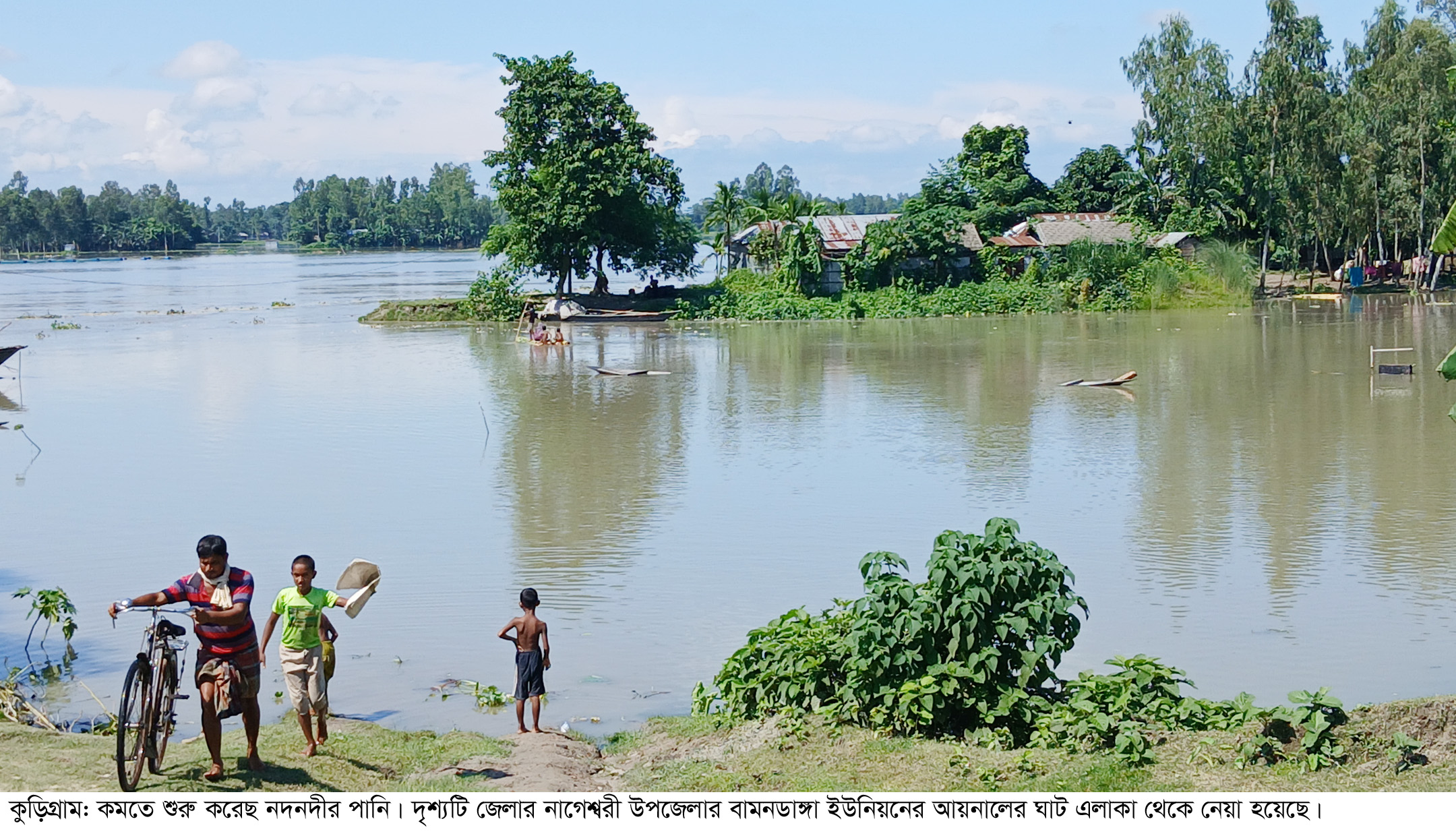 উজান থেকে নেমে আসা পাহাড়ি ঢল ও অতিবৃষ্টির কারণে কুড়িগ্রাম ১৬টি নদ-নদীতে বন্যার পানি বৃদ্ধি পেলেও শুক্রবার থেকে কমতে শুরু করেছে পানি। ফলে কিছুটা স্বস্থিতে রয়েছে নিম্নাঞ্চলের কৃষকরা। শুক্রবার হঠাৎ করে দুধকুমার নদীর পানি ২২ সেন্টিমিটার কমে গিয়ে বিপদসীমার ১৫ সেন্টিমিটার নীচ দিয়ে প্রবাহিত হচ্ছিল। কমতে শুরু করেছে তিস্তা, ব্রহ্মপূত্রনদসহ অন্যান্য নদ-নদীর পানি।