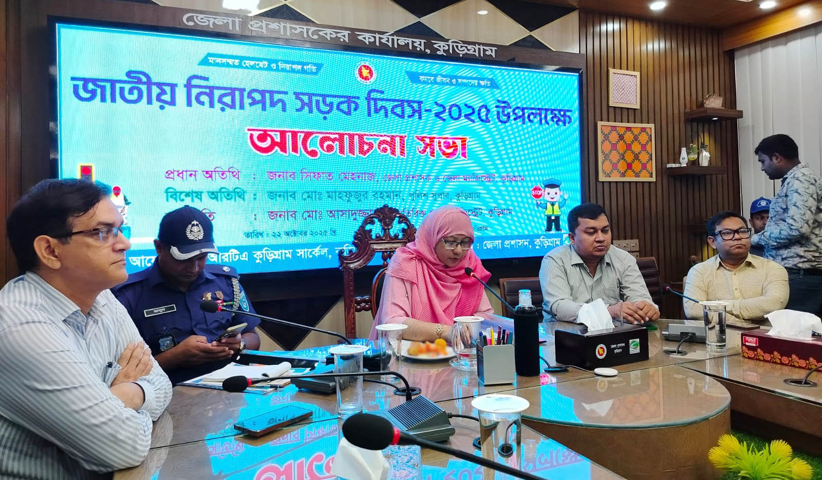 সভায় অতিরিক্ত জেলা ম্যাজিস্ট্রেট মোঃ আসাদুজ্জামানের সভাপতিত্ব ও বিআরটিএ কুড়িগ্রাম সার্কেলের মোটরযান পরিদর্শক নুরুস সাফা সরকারের সঞ্চালনায় প্রধান অতিথি ছিলেন জেলা প্রশাসক সিফাত মেহনাজ। বিশেষ অতিথি হিসেবে বক্তব্য রাখেন অতিরিক্ত পুলিশ সুপার মোঃ মাসুদ রানা।