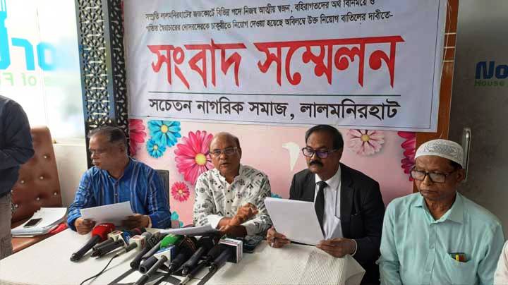 লালমনিরহাট জর্জকোটে বিভিন্ন পদে নিজস্ব আত্নীয় স্বজন সহ অর্থের বিনিময়ে আওয়ামীপন্থীদের চাকুরিতে নিয়োগ দেয়ার প্রতিবাদ ও নিয়োগ বাতিলের দাবীতে এক সংবাদ সম্মেলন অনুষ্ঠিত হয়েছে।