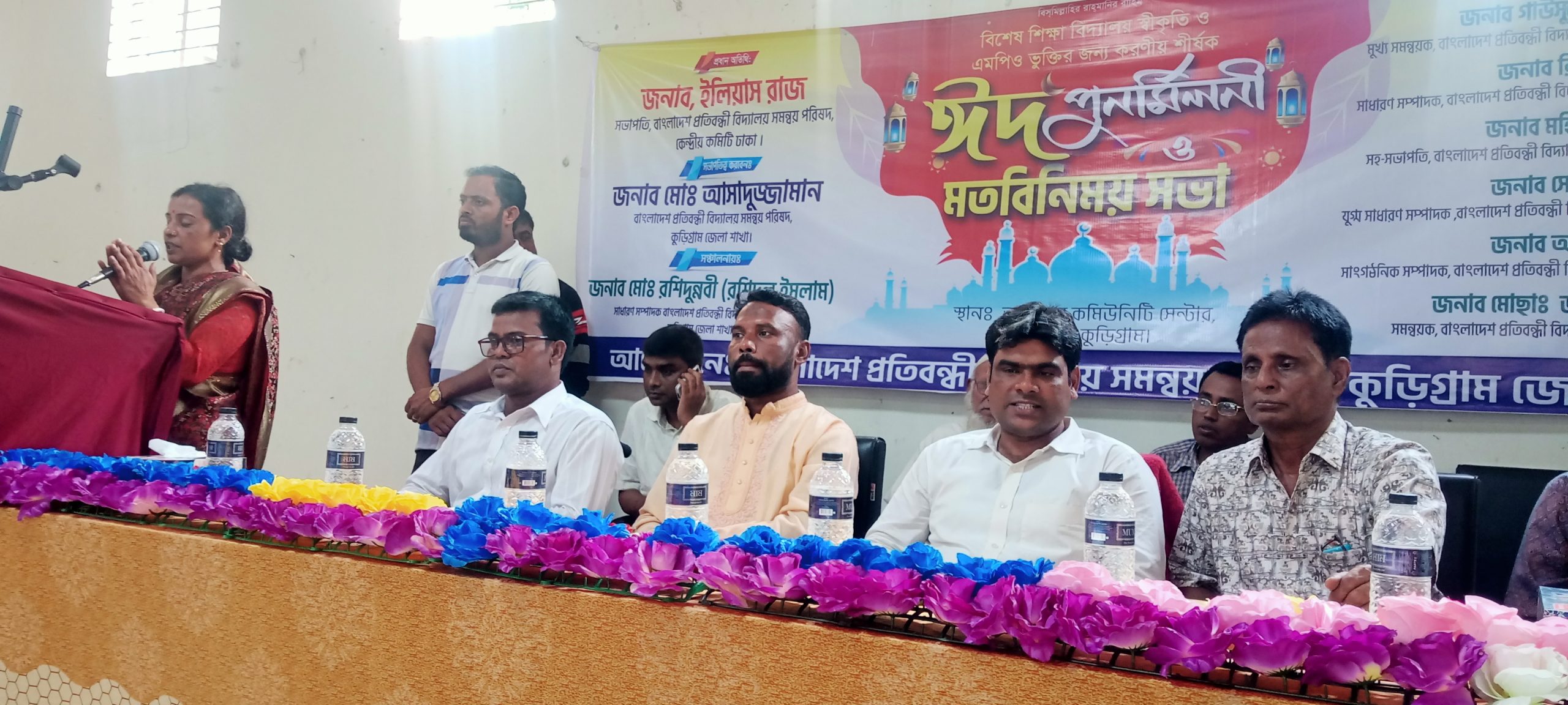 বাংলাদেশ প্রতিবন্ধী বিদ্যালয় সমন্বয় পরিষদ কুড়িগ্রাম জেলা শাখার আয়োজনে বিশেষ শিক্ষা বিদ্যালয় স্বীকৃতি ও এমপিওভুক্তির জন্য করণীয় শীর্ষক ঈদ পূর্ণমিলনী ও মতবিনিময় সভা অনুষ্ঠিত ।