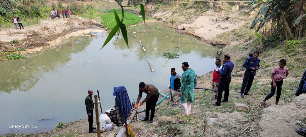 জানাগেছে,কয়েকদিন থেকে ফুলকুমার নদ থেকে নজরুল ইসলাম নামের একব‍্যাক্তি ড্রেজার দিয়ে অভৈধভাবে বালু উত্তোলন করায় হুমকির মুখে পড়েছে থানাঘাট বাজারের হাট সেড, ফুলকুমার ব্রিজ ও ফসলী জমি। স্হানীয়রা ওই ব‍্যাক্তিকে বালু উত্তোলন বন্ধ করেতে বললেও তিনি তাদের কথা না শুনে নদ থেকে বালু উত্তোলন করেই যাচ্ছিল। ভুক্তভোগীরা নিরুপায় হয়ে বালু উত্তোলন বন্ধের দাবি জানিয়ে গত বুধবার উপজেলা নির্বাহী অফিসার বরাবর লিখিত অভিযোগ করলে উপজেলা প্রশাসনের পক্ষ থেকে এই পদক্ষেপ নেয়া হয়।
