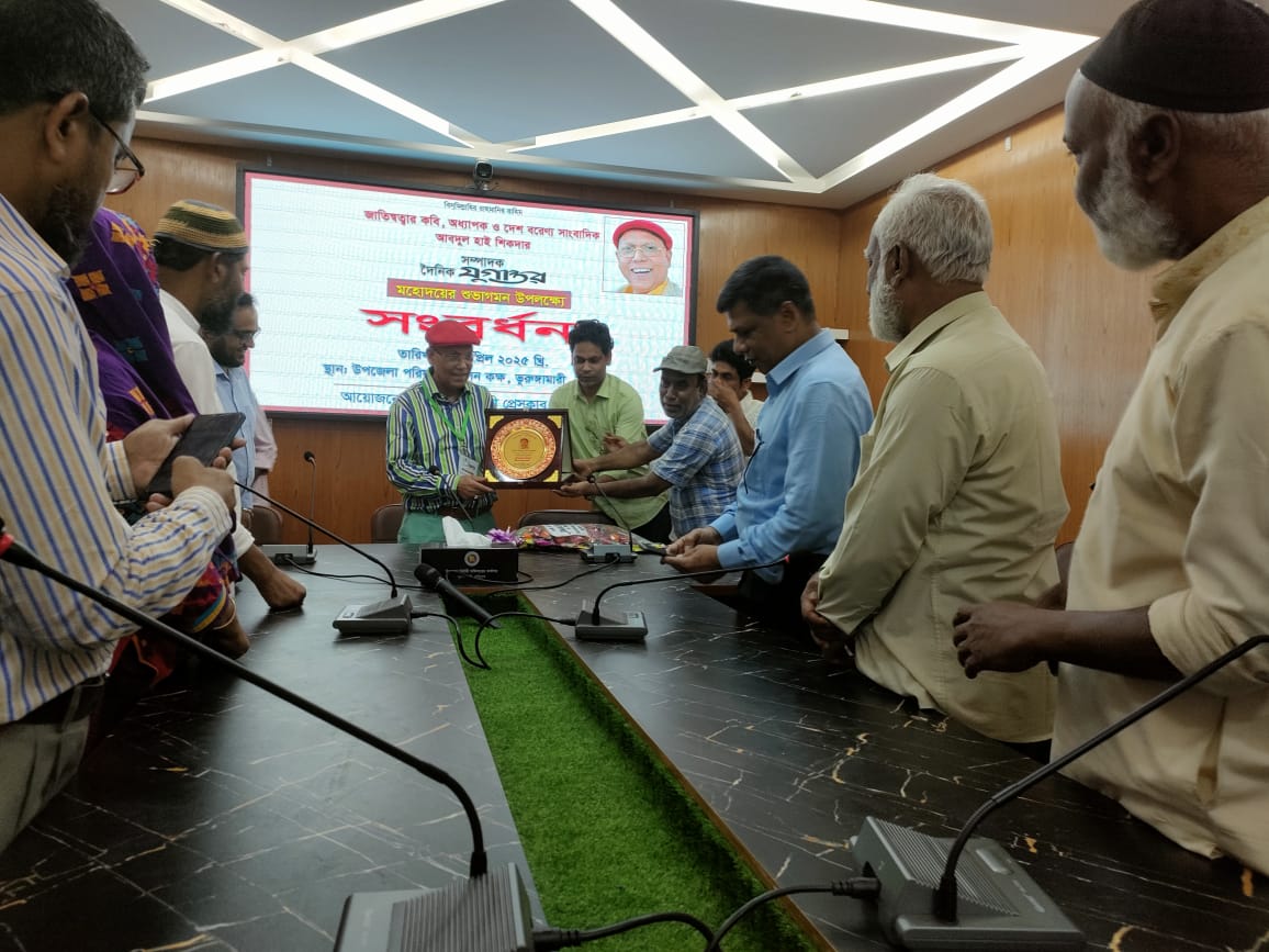 আলোচনা শেষে ভূরুঙ্গামারী প্রেসক্লাবের পক্ষ থেকে আবদুল হাই শিকদারকে সংবর্ধনা ক্রেস্ট ও ফুলেল শুভেচ্ছা জানানো হয়। এছাড়া কুড়িগ্রাম প্রেসক্লাব ও যুগান্তর স্বজন সমাবেশের পক্ষ থেকে ক্রেস্ট প্রদান করা হয়। এসময় ভূরুঙ্গামারী ও কুড়িগ্রাম প্রেসক্লাবের সদস্য এবং স্থানীয় গণ্যমান্য ব্যক্তিরা উপস্থিত ছিলেন।