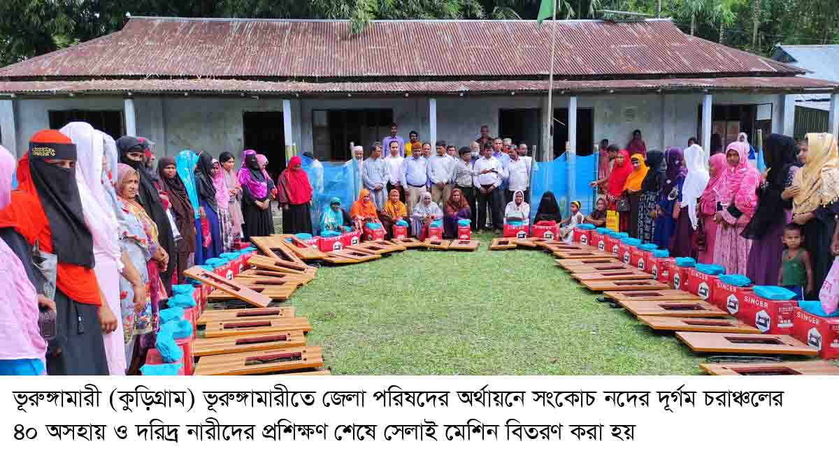 ভূরুঙ্গামারীতে দূর্গম চরাঞ্চলের সুবিধাবঞ্চিত অসহায় দরিদ্র নারীদের উদ্যোক্তা ও স্বাবলম্বী করতে সেলাই প্রশিক্ষণ শেষে ৪০ নারীকে সেলাই মেশিন বিতরণ করা হয়েছে। বৃহস্পতিবার (২৩ অক্টোবর) দুপুরে সংকোচ নদের উত্তর তীরে ভারতীয় সীমান্ত ঘেষা উত্তর ধলডাঙ্গা চরাঞ্চলে জেলা পরিষদ কুড়িগ্রামের অর্থায়নে উপজেলা প্রশাসন ও যুব উন্নয়ন অধিদপ্তর আয়োজনে এ সকল মেশিন বিতরণ করা হয়।
