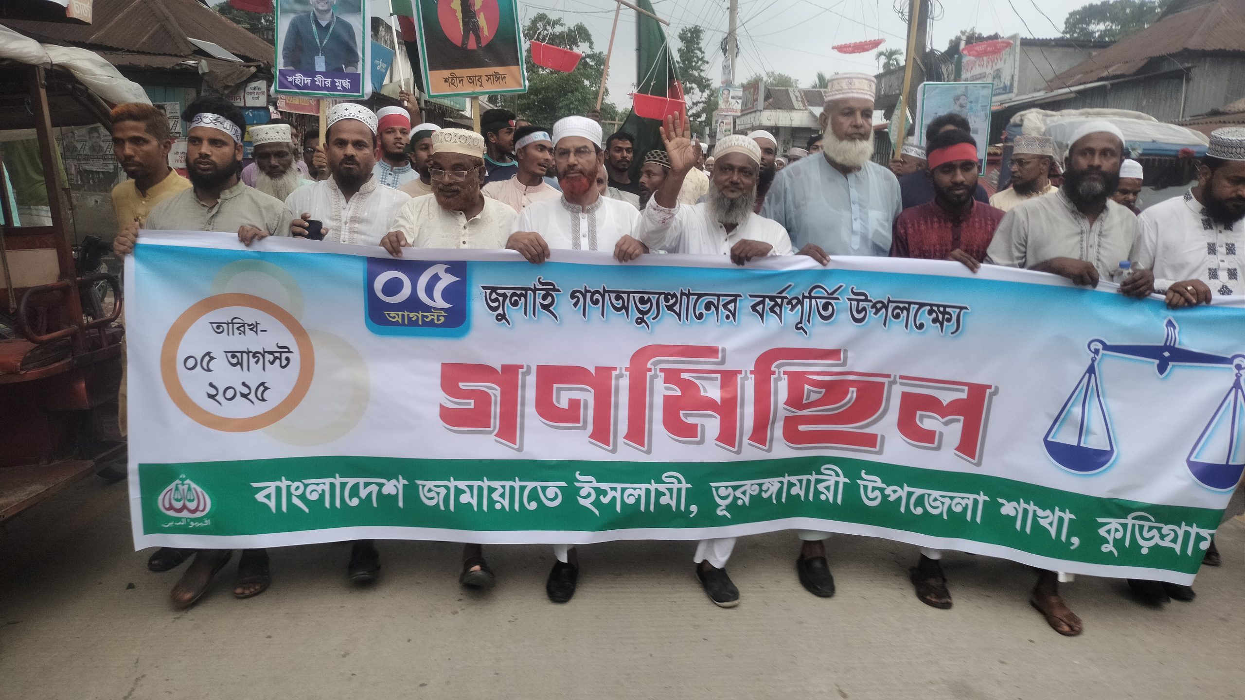 কুড়িগ্রামের ভূরুঙ্গামারীতে ৩৬ জুলাই (৫ আগস্ট ) ছাত্র-জনতার গণঅভ্যুত্থানের প্রথম বর্ষপূর্তি উপলক্ষে বিশাল গণমিছিল ও সমাবেশ করেছে বাংলাদেশ জামায়াতে ইসলামী উপজেলা শাখা। মঙ্গলবার আসরের নামাজের পর ভূরুঙ্গামারী পাইলট সরকারি উচ্চ বিদ্যালয় মাঠ থেকে গণ মিছিলটি শুরু হয়ে শহরের প্রধান প্রধান সড়ক প্রদক্ষিন করে কেন্দ্রীয় বাসষ্টেশনে এসে পথসভার মাধ্যমে শেষ হয়।