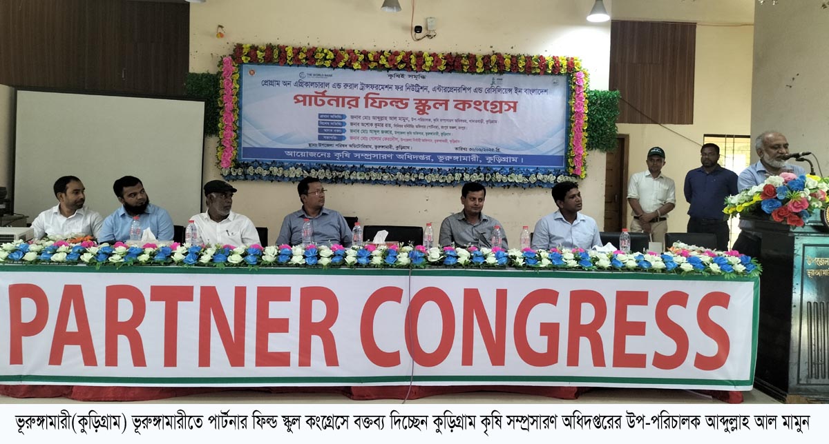 ভূরুঙ্গামারী(প্রতিনিধি)কুড়িগ্রামঃ কুড়িগ্রামের ভূরুঙ্গামারীতে কৃষিই সমৃদ্ধি শিরোনামে প্রোগ্রাম অন এগ্রিকালচারাল অ্যান্ড রুরাল ট্রান্সফরমেশন ফর নিউট্রিশন, ইন্টারপ্রেনরশিপ এন্ড রেসিলিয়েন্স ইন বাংলাদেশ (পার্টনার) ফিল্ড স্কুল কংগ্রেস কর্মসূচি অনুষ্ঠিত হয়েছে।