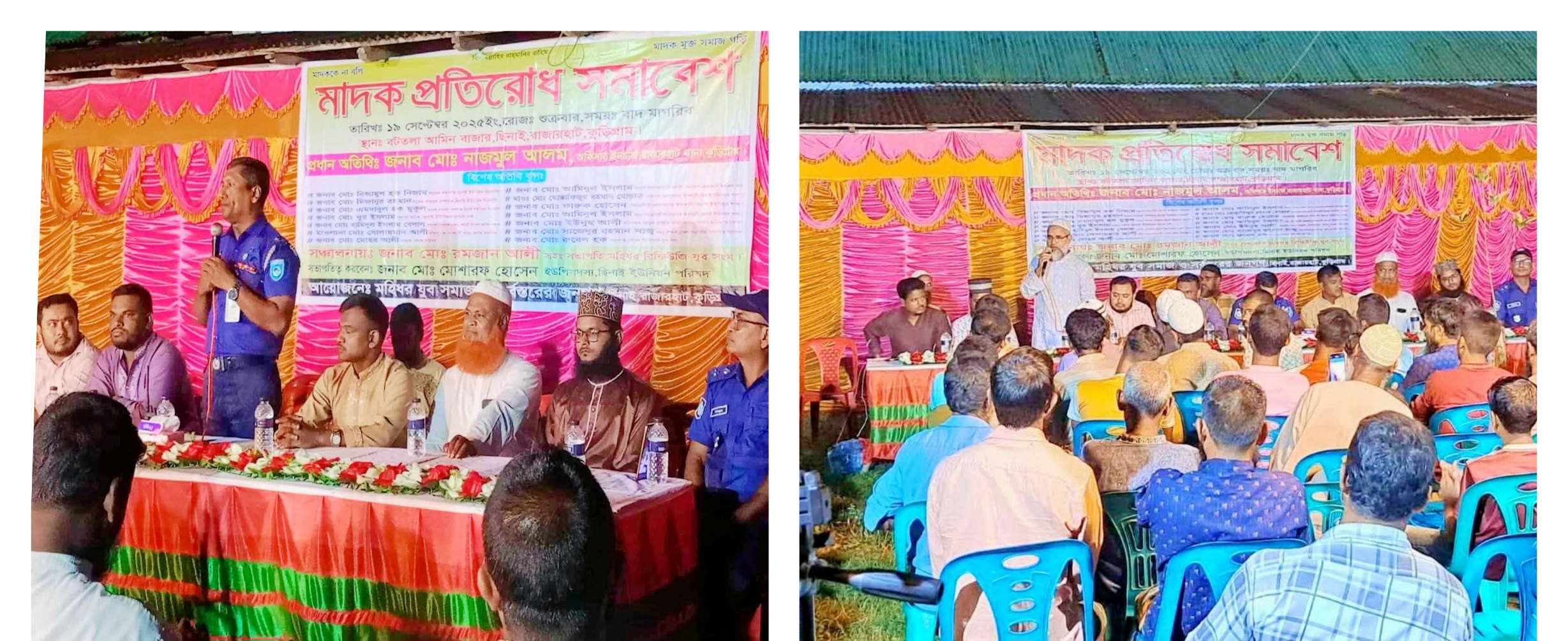 সমাবেশে সভাপতিত্ব করেন ছিনাই ইউনিয়ন পরিষদের সদস্য মোশারফ হোসেন। মহিধর যুব সমাজ ও সর্বস্তরের জনগণের আয়োজনে সমাবেশে প্রধান অতিথি হিসেবে উপস্থিত ছিলেন রাজারহাট থানার অফিসার ইনচার্জ (ওসি) মোঃ নাজমুল আলম। তার বক্তব্যে তিনি বলেন, মাদক একটি সামাজিক ব্যাধি। এটি শুধু একজনকে নয়, পুরো পরিবার ও সমাজকে ধ্বংস করে। মাদক ব্যবসায়ী ও সেবনকারীদের বিরুদ্ধে সামাজিক প্রতিরোধ গড়ে তোলা এখন সময়ের দাবি। আইনশৃঙ্খলা বাহিনী সর্বোচ্চ চেষ্টা করছে, কিন্তু জনগণের সক্রিয় সহযোগিতা ছাড়া মাদকমুক্ত সমাজ গড়া সম্ভব নয়। প্রতিটি পাড়ায় মহল্লায় নজরদারি বাড়াতে হবে এবং যেকোনো মাদক সংক্রান্ত তথ্য সঙ্গে সঙ্গে পুলিশকে জানাতে হবে।